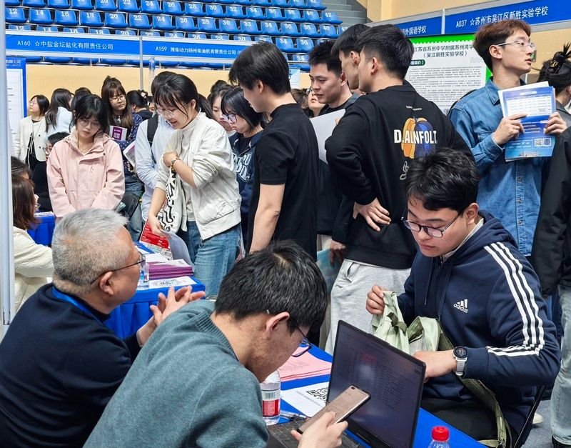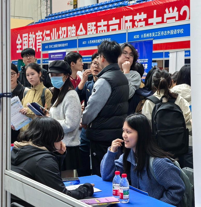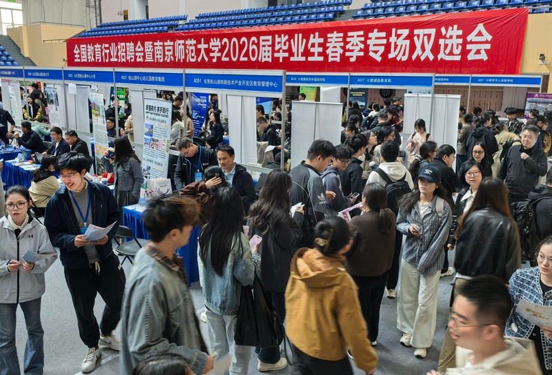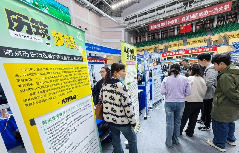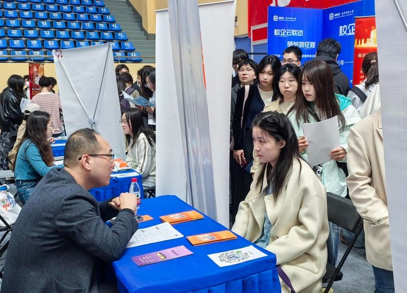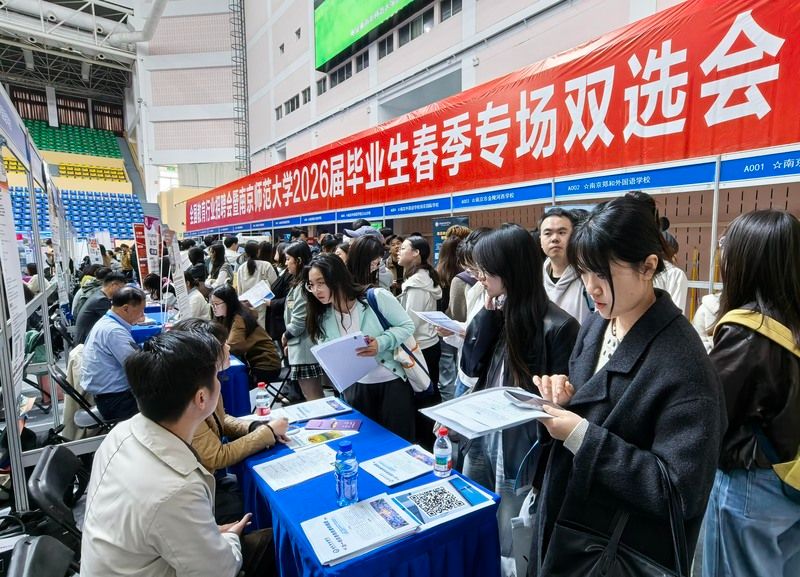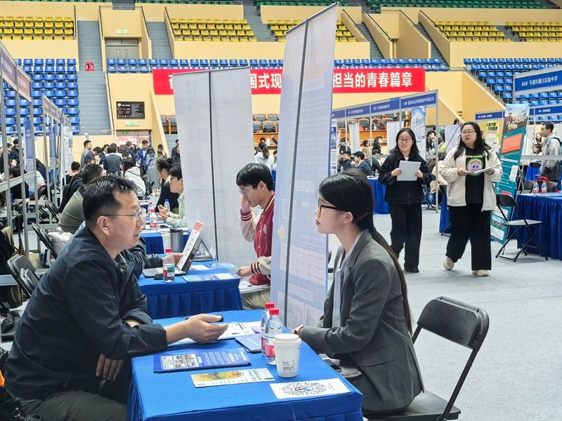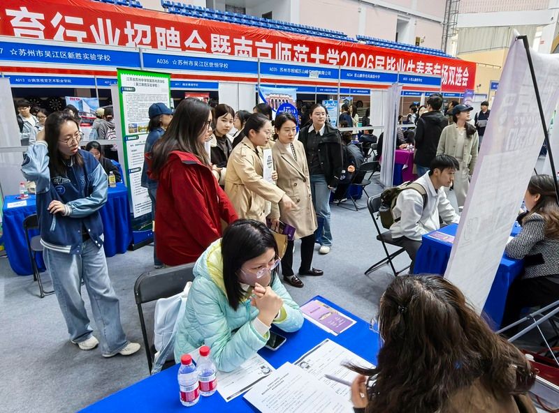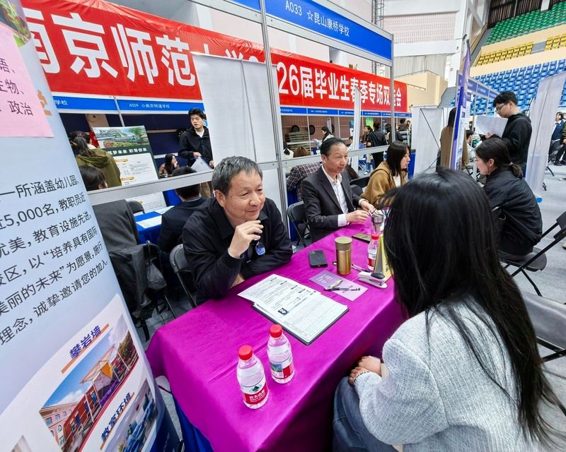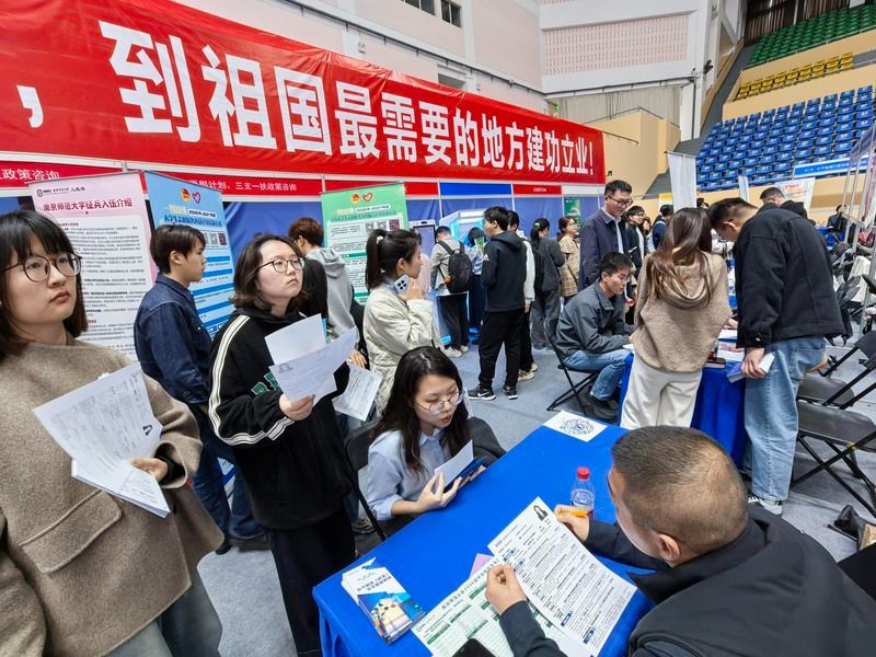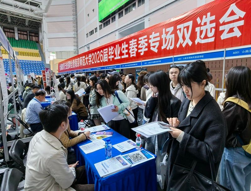 2026年4月8日,南京实盘配资平台,主题为“扩容提质强服务 春季攻坚促就业”的全国教育行业招聘会暨南京师范大学2026届毕业生春季专场双选会在南京师范大学仙林校区举行。来自全国13省51市的300多家优质单位提供1.2万多个岗位,吸引众多2026届高校毕业生前来应聘。