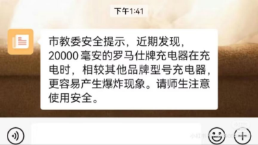 “北京多所高校禁用罗马仕充电宝”事件有了新进展。